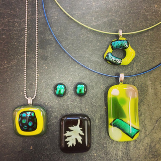 Our second course is for jewellery fans, it's Fused Glass Jewellery for Beginners. You will make a collection of pieces, from a wide variety of decorative techniques we will demonstrate, to your own taste, colours and designs. No previous experience needed, and we give you a supply of findings and the best glue so you can complete your pieces once fired. after the course. Lots of sparkly options on this one!
